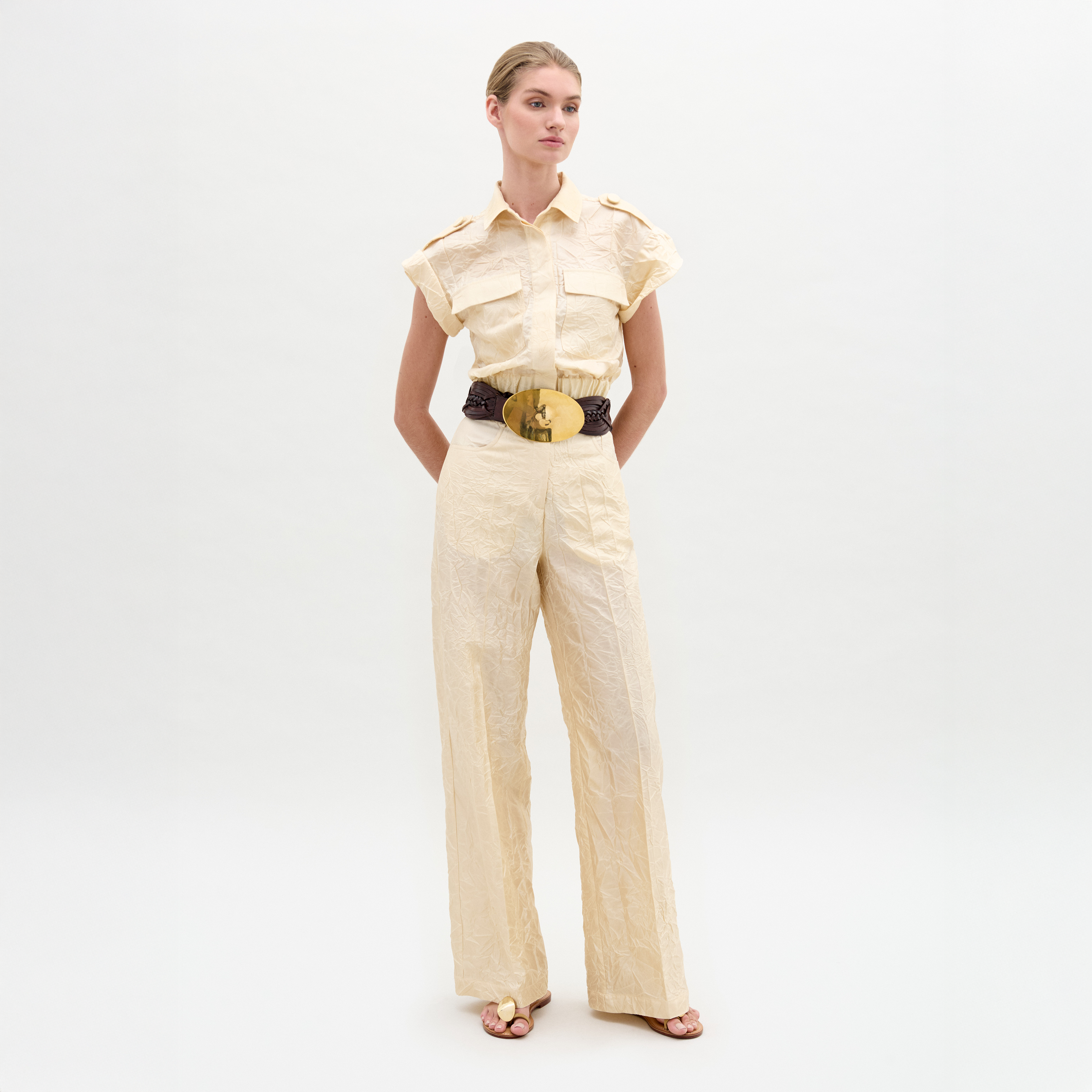 - Wide-leg silhouette
