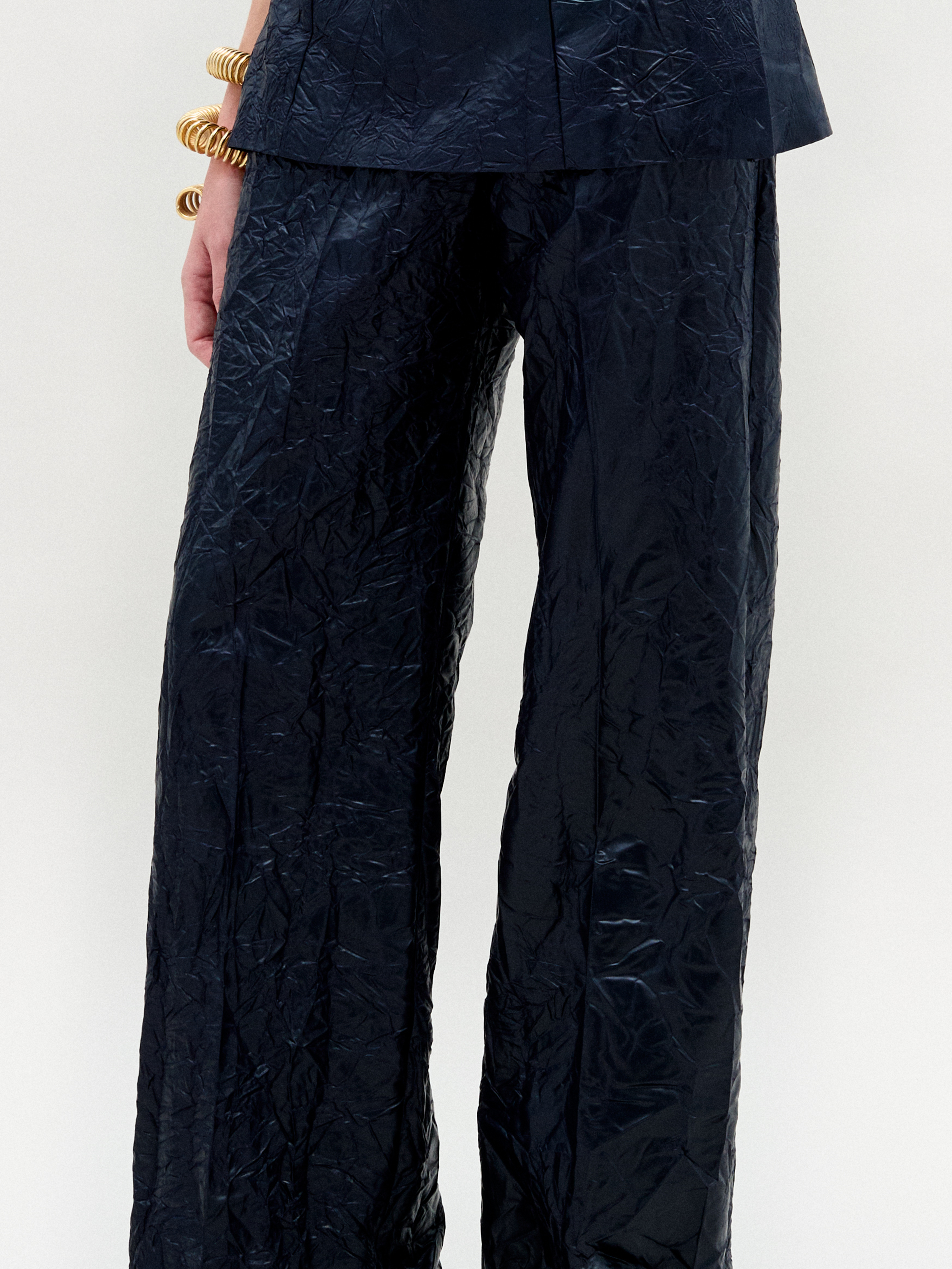 - Wide-leg silhouette