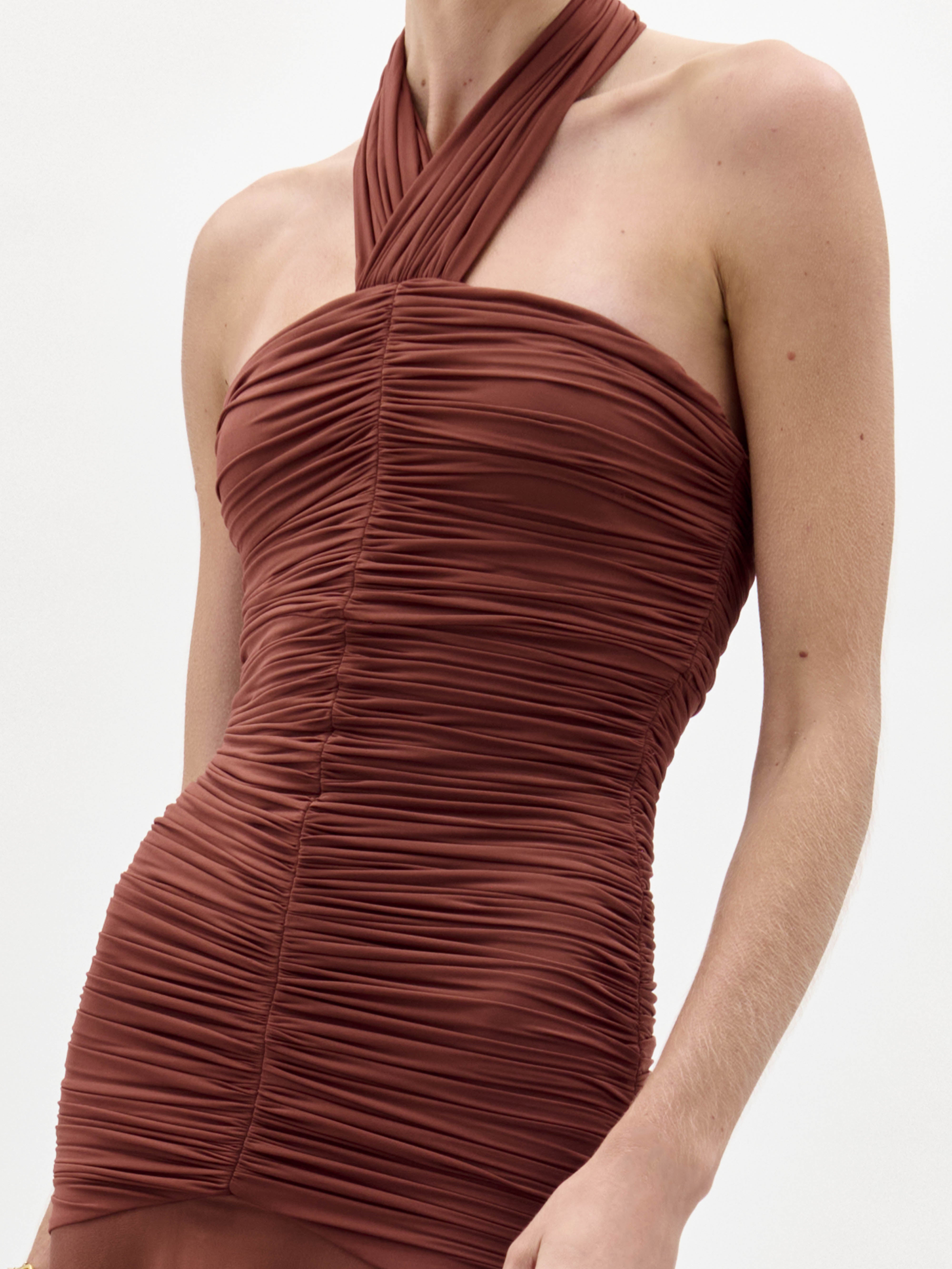 - Criss-cross halter neckline